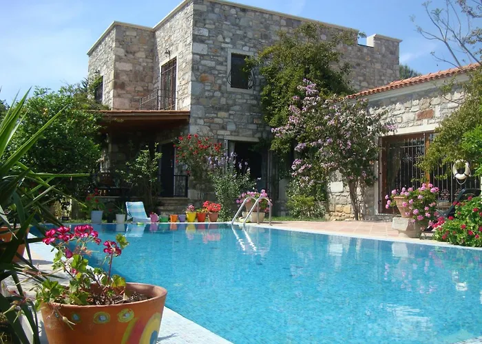 Det finns mikrovågsugn, vattenkokare och kylskåp, samt te-/kaffebryggare. Gästerna har också tillgång till mathörna. Gästerna kan prova medelhavsrätter på Claypots Restaurant, som ligger mindre än 1 km bort. Villan kan nås med bil på 38 minuter från Milas-Bodrum flygplats.